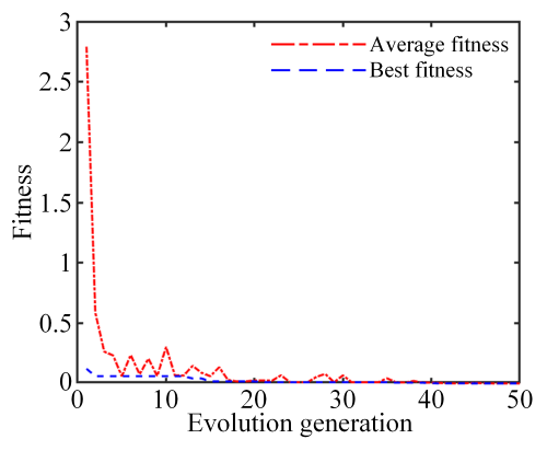 Based on the established PSO-BPNN prediction model, the ranges of each input parameter and the optimization target were determined. GA was then employed to optimize the model parameters. To obtain the optimal combination of parameters, with 32.07° as the optimization objective, the objective function and constraint function of the established optimization problem are defined as follows: